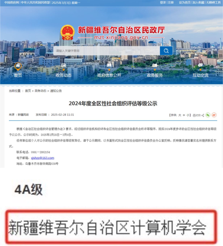 学会喜报|新疆维吾尔自治区计算机学会被评选为“4A”级行业学会