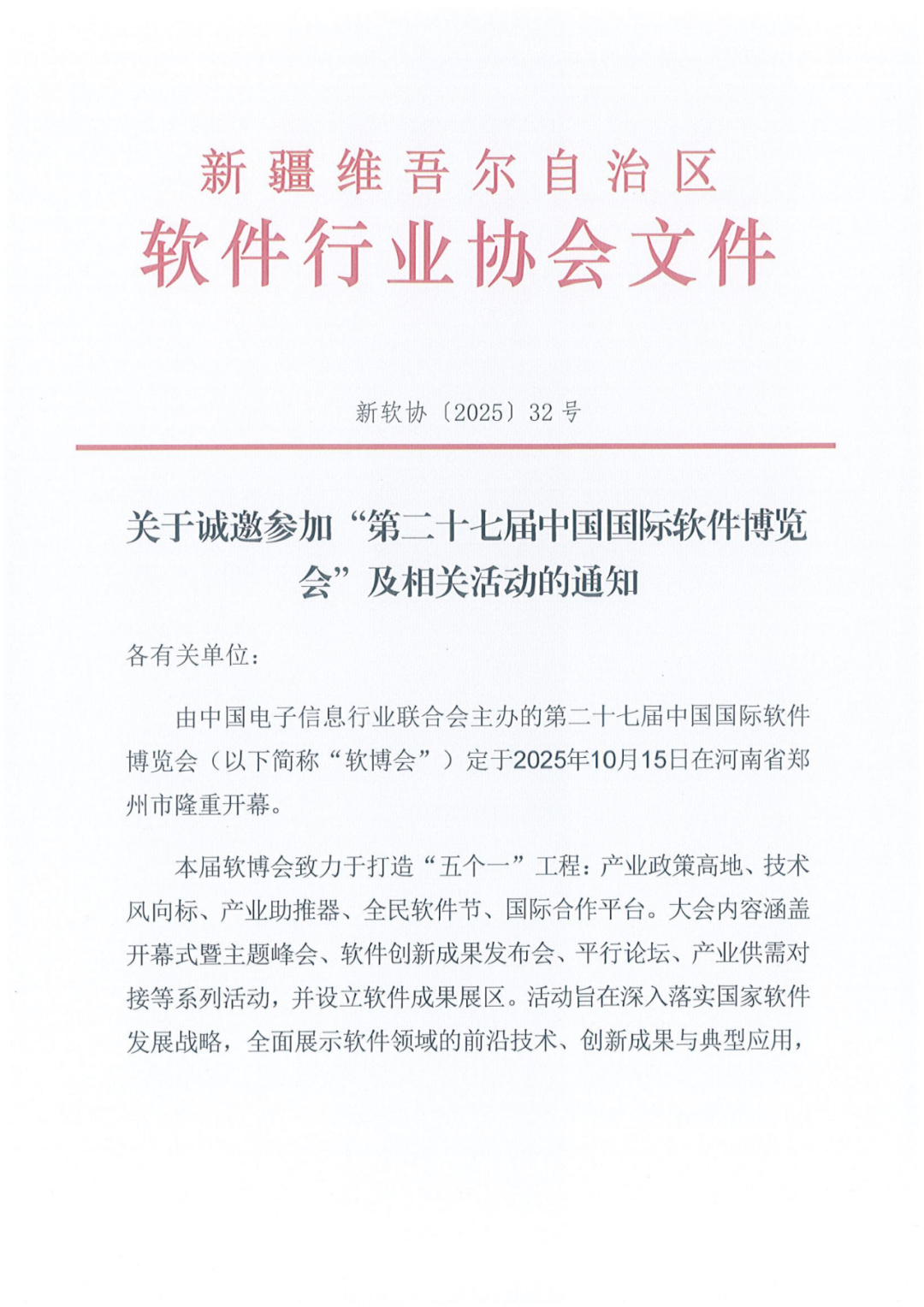 关于诚邀参加“第二十七届中国国际软件博览会”及相关活动的通知
