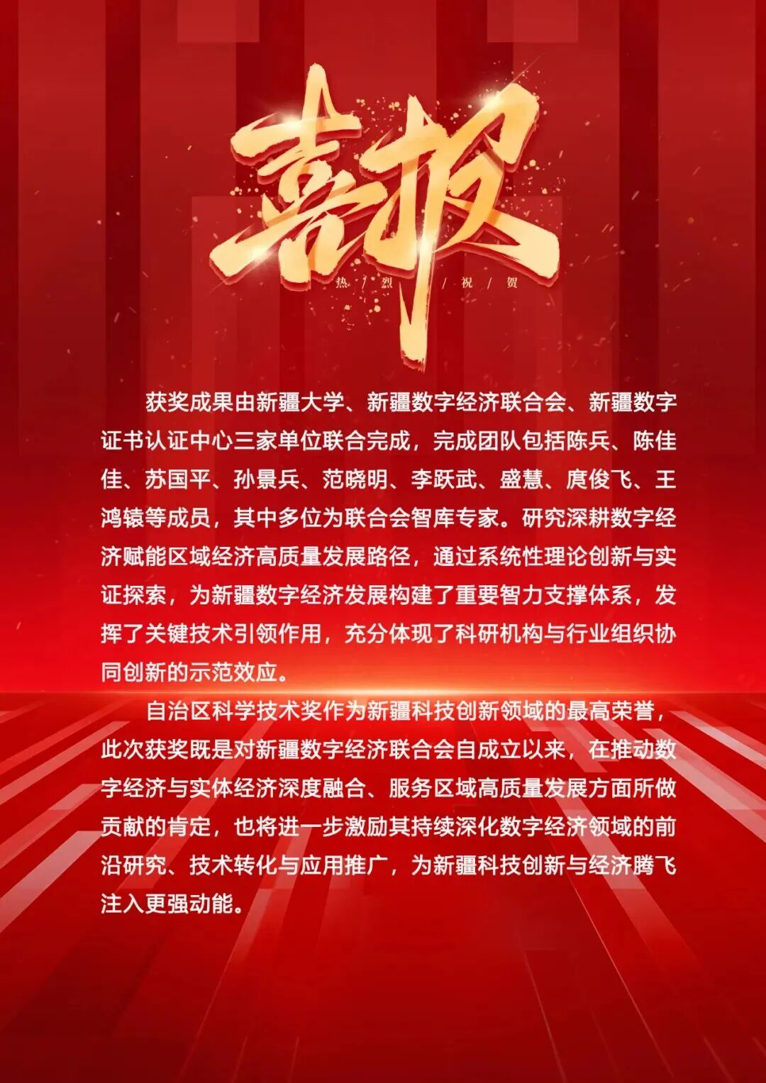 热烈祝贺新疆数字经济联合会参与完成的科研成果—《数字经济系列研究推动新疆经济高质量发展》荣获2024年度自治区科学技术奖二等奖!