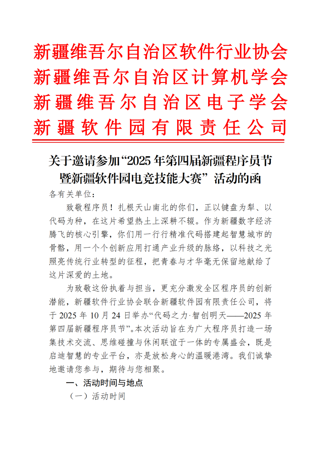 “2025年第四届新疆程序员节暨新疆软件园技能大赛”活动开始啦!