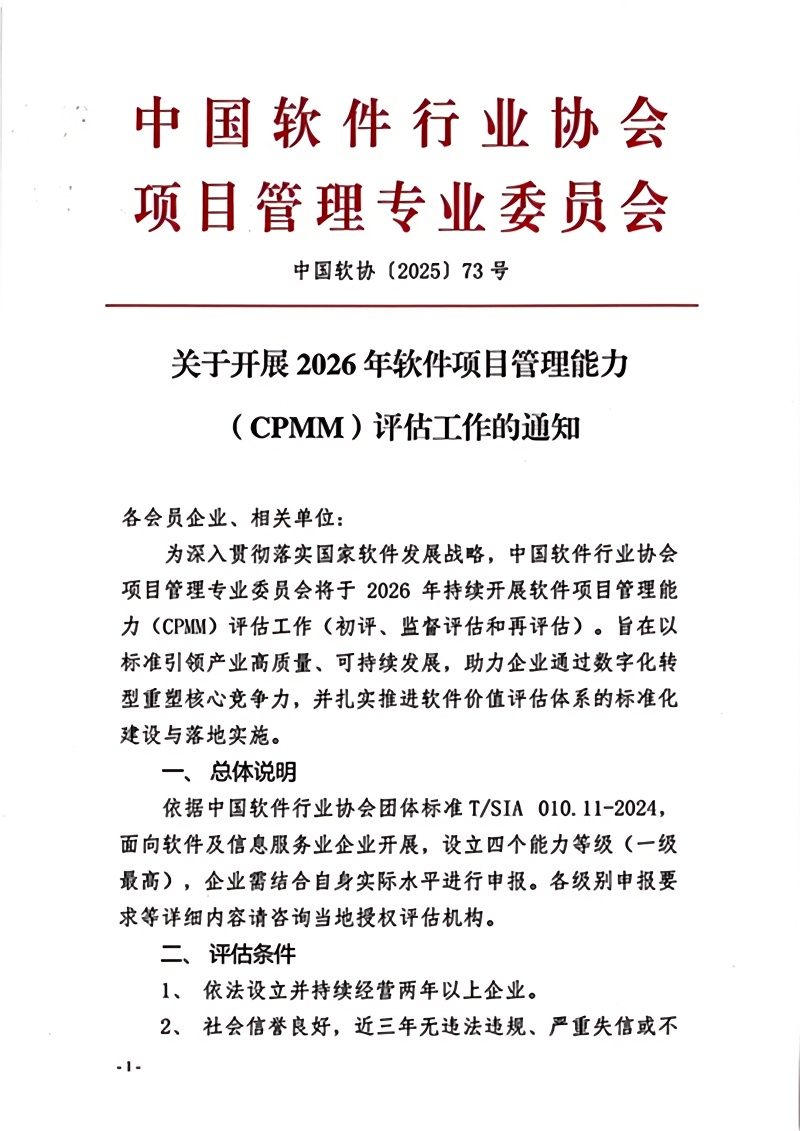 关于开展2026年软件项目管理能力(CPMM)评估工作的通知