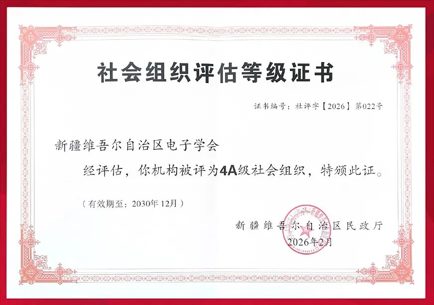 学会喜报|新疆维吾尔自治区电子学会被评选为“4A”级行业学会