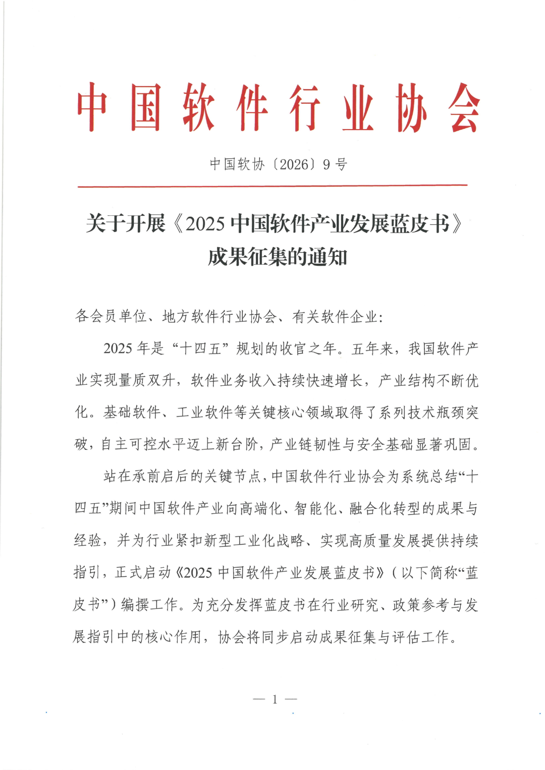 关于开展《2025中国软件产业发展蓝皮书》成果征集的通知