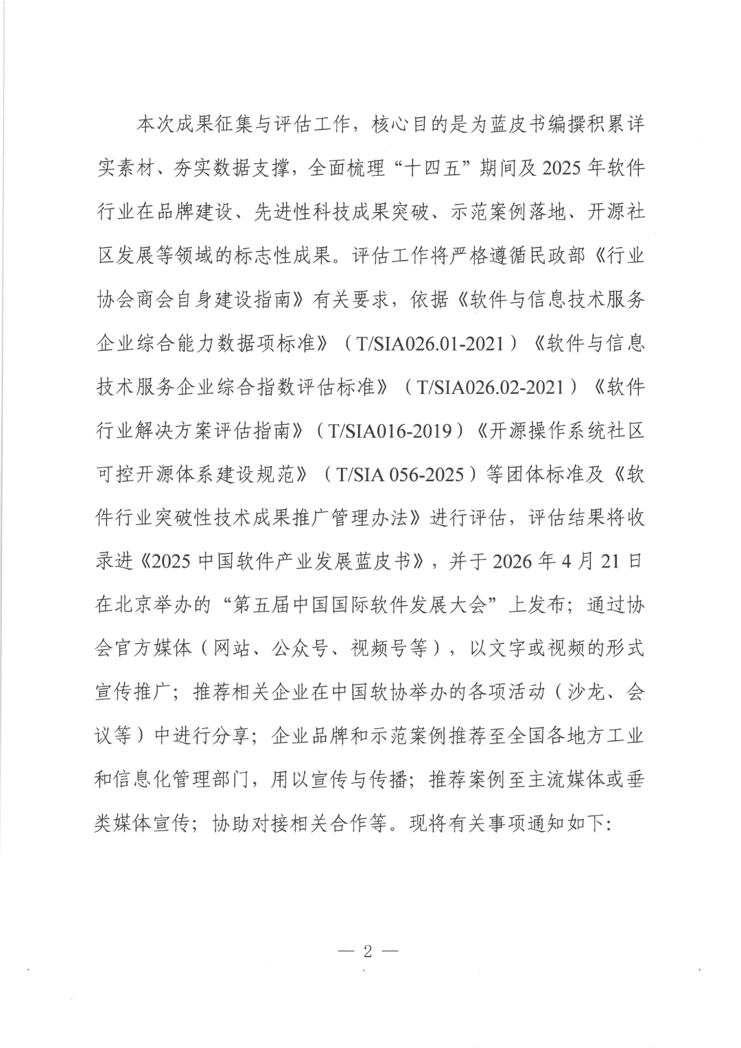 中国软件行业协会正式启动《2025中国软件产业发展蓝皮书》(以下简称“蓝皮书”)编撰工作。为充分发挥蓝皮书在行业研究、政策参考与发展指引中的核心作用,将同步启动成果征集与评估工作,评估结果将收录进《2025中国软件产业发展蓝皮书》,并于2026年4月21日在北京举办的“第五届中国国际软件发展大会”上发布;通过中国软协官方媒体(网站、公众号、视频号等),以文字或视频的形式宣传推广;推荐相关企业在中国软协举办的各项活动(沙龙、会议等)中进行分享;企业品牌和示范案例推荐至全国各地方工业和信息化管理部门,用以宣传与传播;推荐案例至主流媒体或垂类媒体宣传;协助对接相关合作等。根据工作安排,新疆软件行业协会负责推荐新疆维吾尔自治区相关企业申报,欢迎相关企业积极参与本次征集工作。会员服务部:汪林林 13659980796 (微信同号)