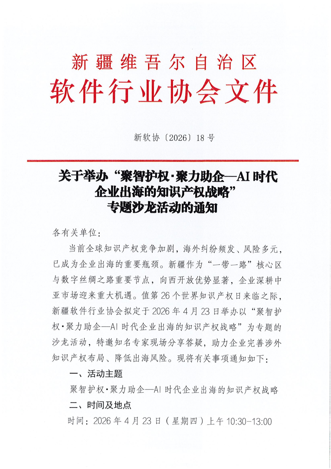 关于举办“聚智护权·聚力助企-AI时代企业出海的知识产权战略”专题沙龙活动的通知